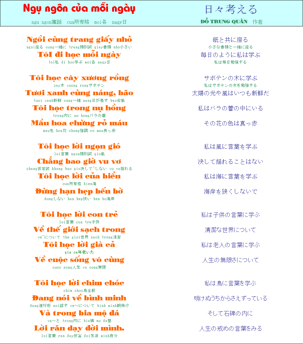 このベトナム語の詩は「五つの言葉」で書かれています。
